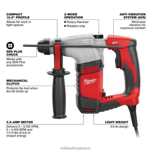 γεώτρηση | γρ Milwaukee Τσοκ 5,5 amp 5/8 ιντσών sds με κλειδί και περιστροφικό σφυρί N868F101