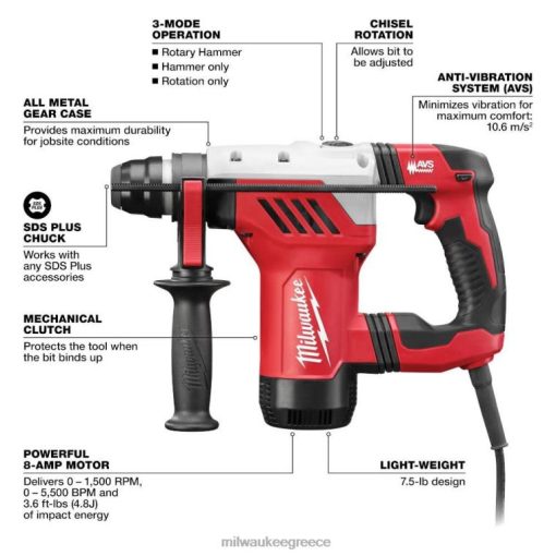 γεώτρηση | γρ Milwaukee 1-1/8 in. sds plus κιτ περιστροφικού σφυριού N868F79