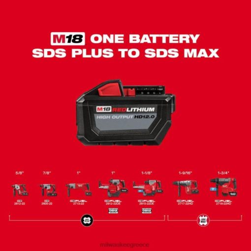 το milwaukee m18 καύσιμο 1-1/8″ sds plus περιστροφικό σφυρί είναι η επόμενη γενιά ασύρματων περιστροφικών σφυριών που προσφέρει απόλυτη απόδοση και παραγωγικότητα στο εργοτάξιο. Το m18 καυσίμου 1-1/8″ sds plus περιστροφικό σφυρί είναι το πιο γρήγορο τρυπάνι και το πιο δυνατό χτύπημα περιστροφικό σφυρί στην κατηγορία του με έλεγχο αυτόματης διακοπής λειτουργίας για βελτιωμένη ασφάλεια, τρύπημα έως 50 οπές 5/8″ x 3″ ανά φόρτιση όταν συνδυάζονται με την μπαταρία m18 υψηλής απόδοσης xc6.0. ο κινητήρας χωρίς ψήκτρες powerstate αποδίδει 3,6 ft-lbs ενέργειας κρούσης, 800 rpm και 4.600 bpm, παρέχοντας ταχύτητα και ισχύ στις πιο απαιτητικές εφαρμογές. Η τεχνολογία εργαλείων redlink plus Intelligence εξασφαλίζει μέγιστη απόδοση περιστροφικού τρυπανιού και το προστατεύει από υπερφόρτωση, υπερθέρμανση και υπερβολική εκφόρτιση. η μπαταρία m18 redlithium υψηλής απόδοσης xc6.0 προσφέρει 50% περισσότερη ισχύ ενώ λειτουργεί 50% πιο δροσερή από τις μπαταρίες m18 redlithium xc. αυτό το ασύρματο σφυροδράπανο παρέχει μέγιστο έλεγχο και enαυξημένη ασφάλεια με το σύστημα αυτόματης διακοπής κλωτσήματος. Αυτό το χαρακτηριστικό αποτρέπει την υπερβολική περιστροφή εάν το εργαλείο δεσμευτεί κατά τη διάτρηση σε ράβδο οπλισμού ή σκληρό αδρανή. Το αντικραδασμικό σύστημα avs της milwaukee ελαχιστοποιεί τους κραδασμούς για μέγιστη άνεση.