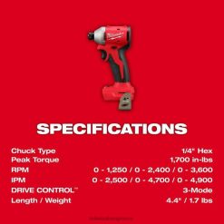 milwaukee m18 compact 1/4 in hex 3-speed κρουστικό πρόγραμμα οδήγησης (γυμνό εργαλείο)
